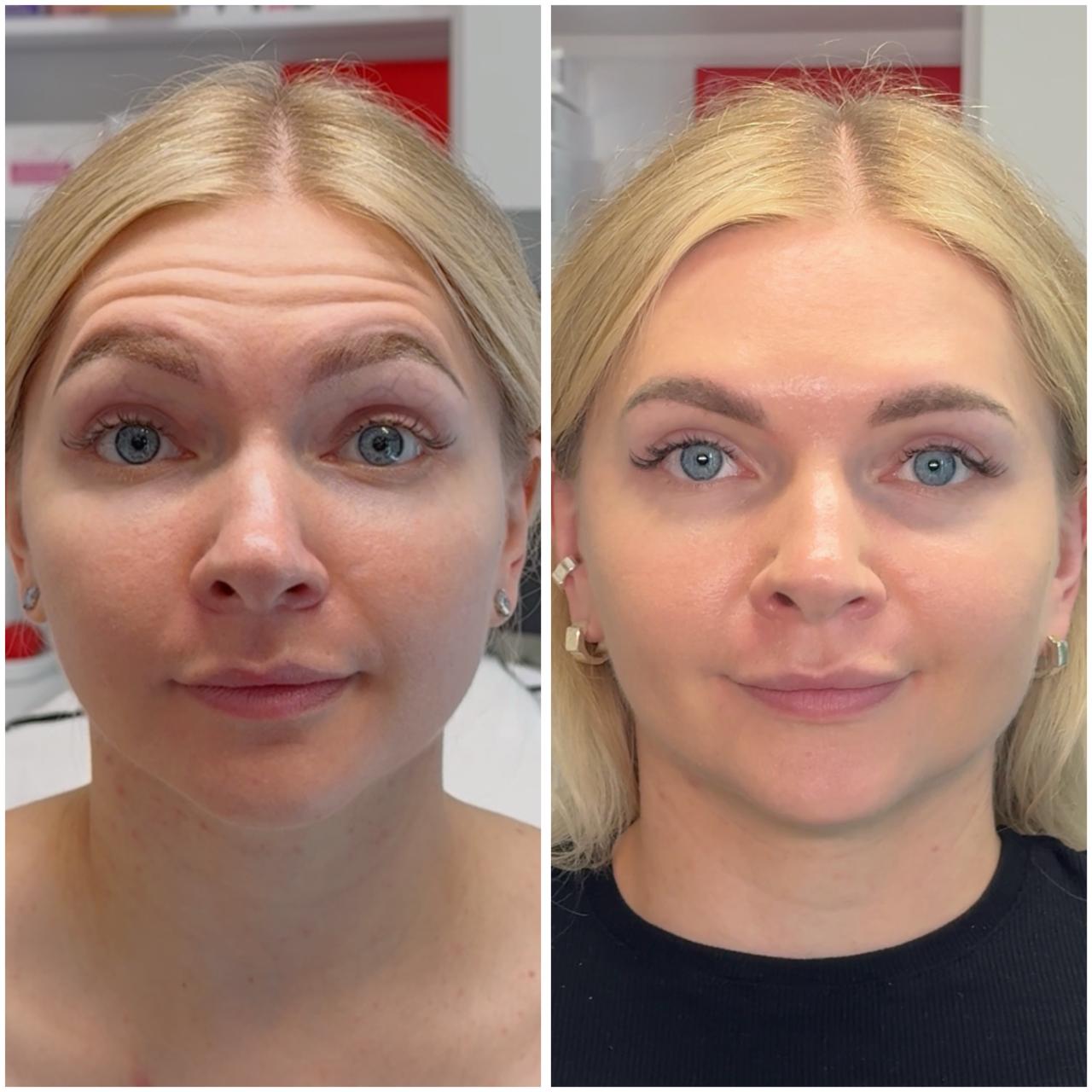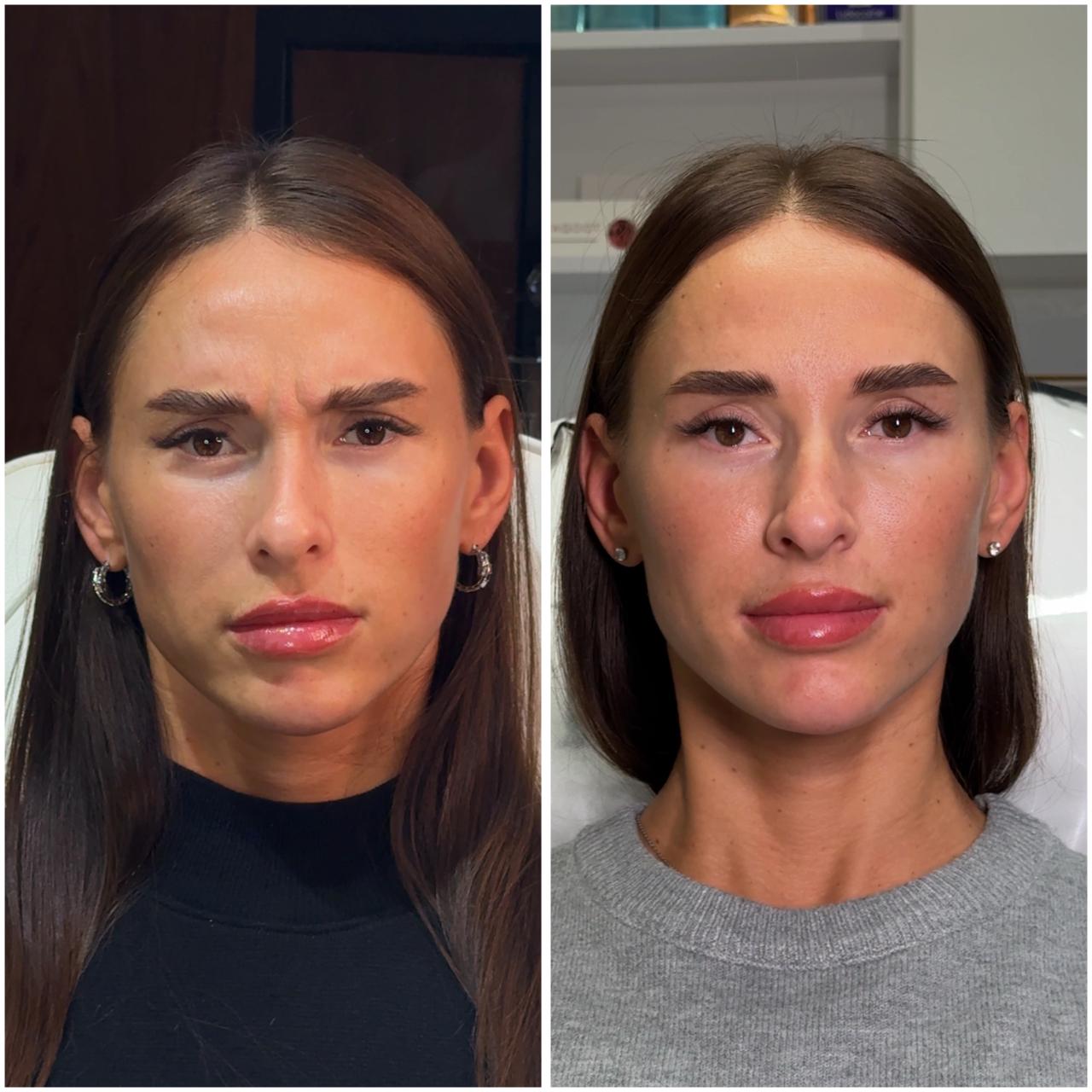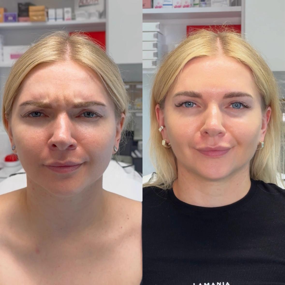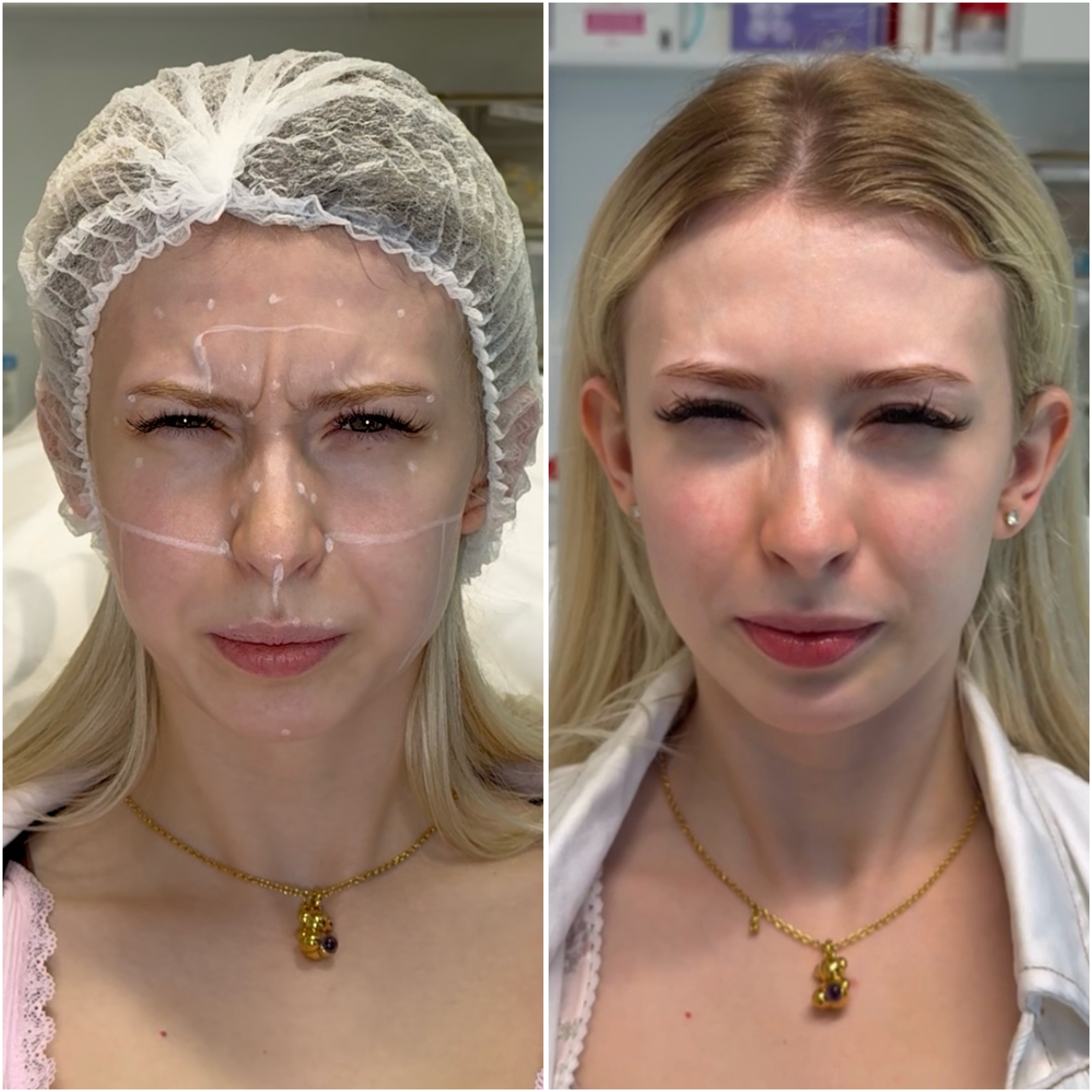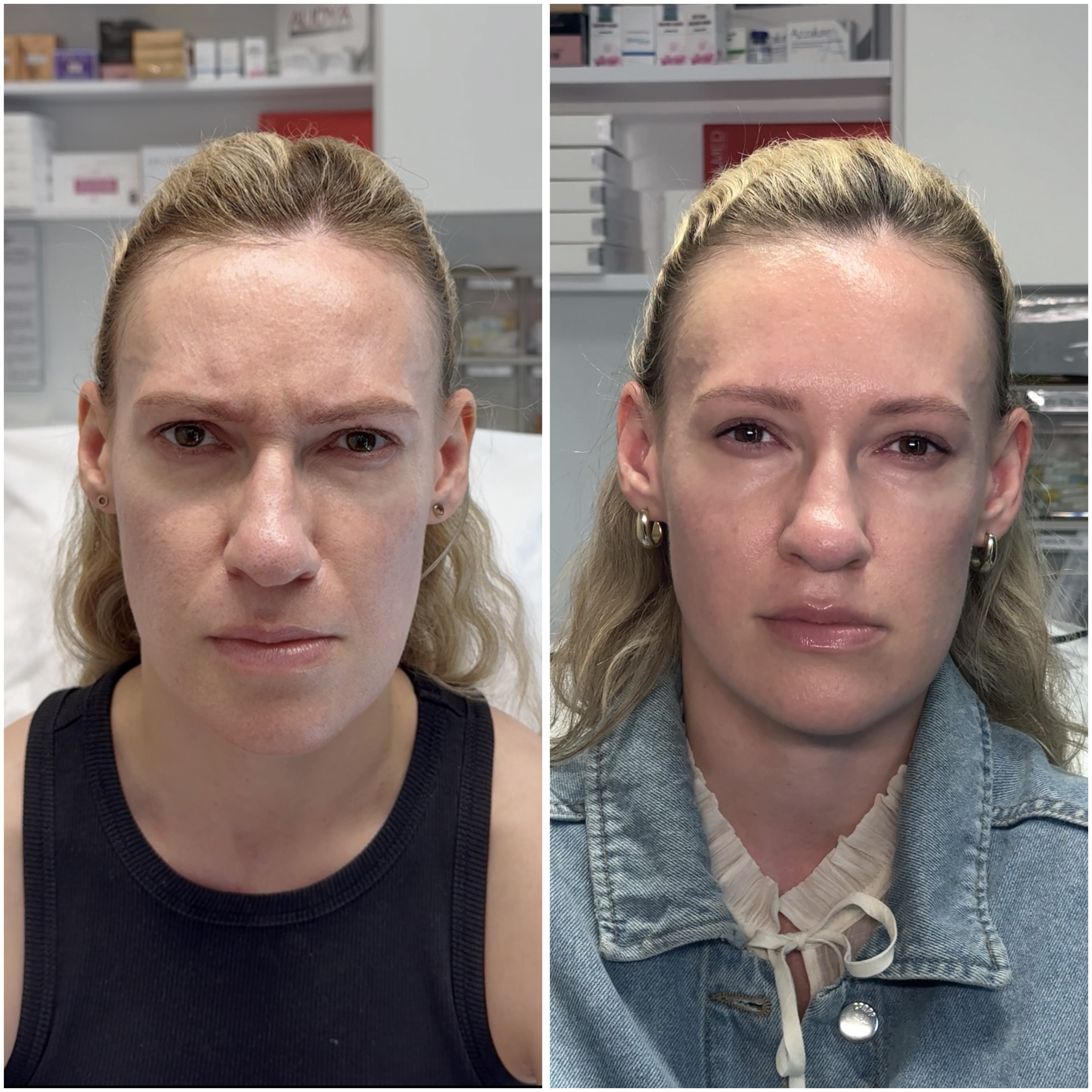 “Lwia zmarszczka”, zmarszczki poziome czoła